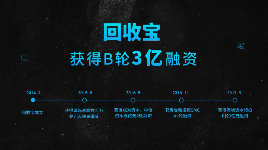 在本輪融資之前,回收寶先后于 2015 年 8 月完成了源碼本錢數百萬美元的天使輪融資、 2016 年 5 月獲得成為本錢、中信本錢近億元A輪融資、 2016 年 11 月獲得香港SMC世銘集團A+輪融資。每一次成功融資,都意味著企業的進一步擴大,行業的進一步發展,同時也意味著回收行業這一藍海市場將進一步開辟。