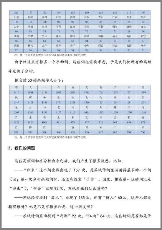 當(dāng)然,神一般的小學(xué)生背后站著一位高深莫測(cè)的爸爸。從論文中多次提到“爸爸”可以知道,是他爸爸通過(guò)一段程序找到蘇軾 3000 多詩(shī)詞里的高頻詞,,為其大數(shù)據(jù)分析提供了強(qiáng)大的技術(shù)支持。但孩子的分析學(xué)習(xí)能力毋庸置疑。