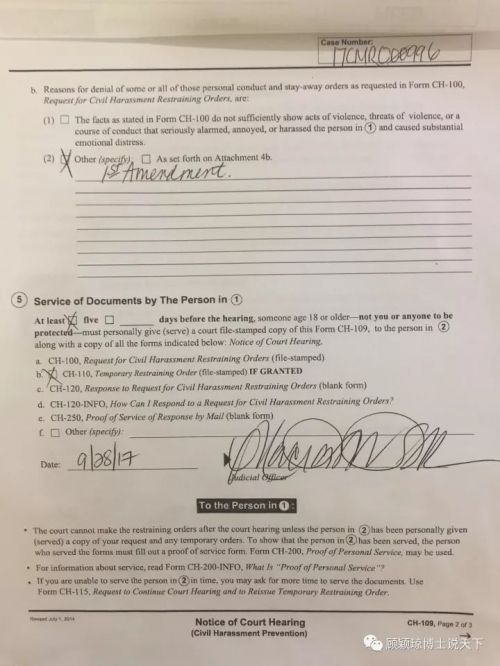 同時(shí),顧穎瓊公開了收到了的法院傳票內(nèi)容,并稱,臨時(shí)限制令的關(guān)鍵之處,在于法院只批準(zhǔn)了部分賈躍亭的要求,而以新聞言論自由拒絕了賈躍亭部分的要求。顧穎瓊指出,法院批準(zhǔn)的禁令范圍包孕“不能去身體接觸賈躍亭,好比打,罵,性騷擾之類的行為是嚴(yán)格禁止的, 不能以任何方式聯(lián)系他,好比email啊,微信啊之類的,距離賈躍亭至少100yards以外(相當(dāng)于 91 米以外)”。