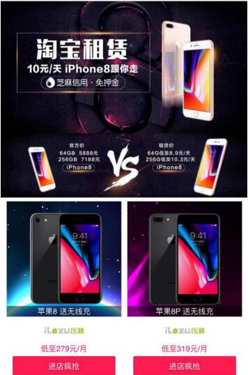 據樂租淘寶運營負責人稱,昨日凌晨樂租在淘寶上線iPhone8 租賃后只用了 3 個小時,所有iPhone8 和8Plus就被“搶租一空”。