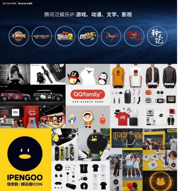 據介紹,,京東和騰訊推出的CP(Content +Product)計劃,基于騰訊包孕QQ企鵝形象和QQfamily、怪奇鵝等衍生社交IP,及其泛娛樂生態中的游戲、小說、動漫等諸多IP內容,進行下游衍生品拓展。