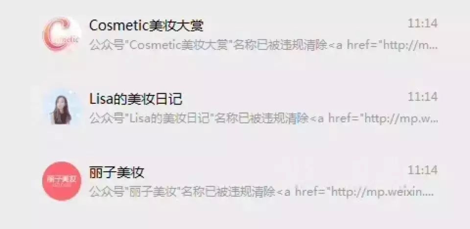 之后,在一些微信公眾號(hào)運(yùn)營群內(nèi),也有用戶爆料稱,其它的美妝類公眾號(hào)也存在被清除的情況,而且貼出了截圖。