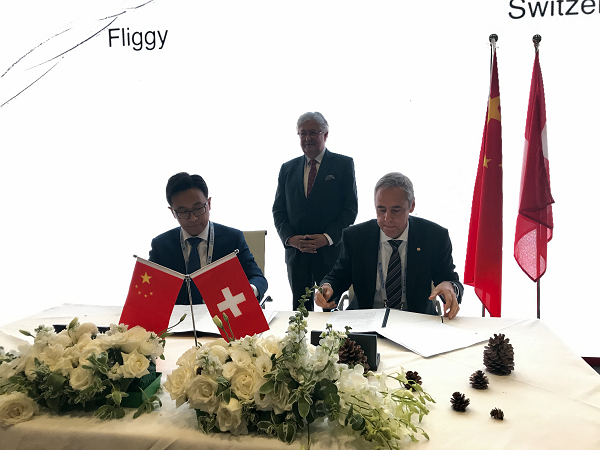 瑞士國(guó)家旅游局副局長(zhǎng)艾伯哈德與飛豬歐洲副總裁崔凱簽署協(xié)議