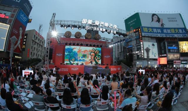 “我的青春我做主,我的音樂我做主!”黃興步行街中心廣場,慕名而來的快樂男聲粉絲團和熱情的長沙市民們將國美步行街店前坪圍了個水泄欠亨,臺上五名快樂男聲和臺下的粉絲們在用自拍桿千人大合拍,喊著今晚的活動標語,現場化為了歡樂的海洋。
