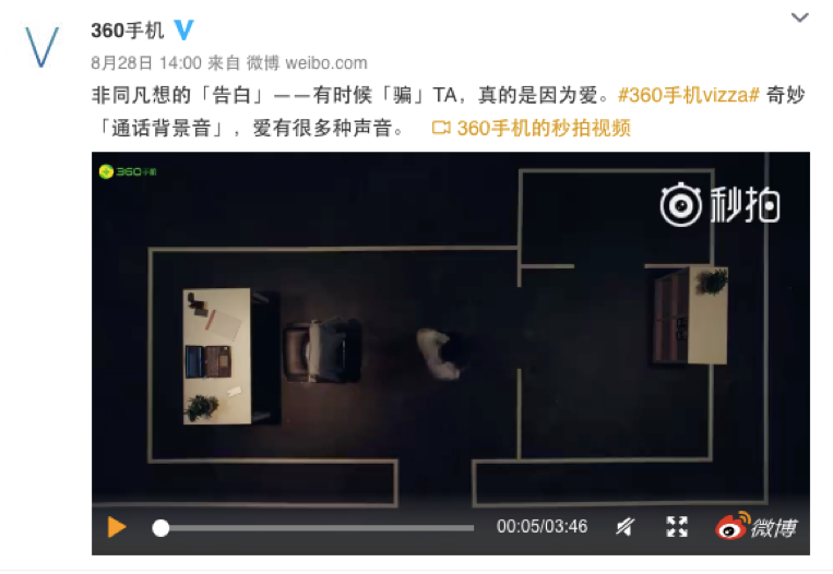 不少網友因故事情節對短片中的手機功能引發關注,其實,片中男主人公所用的手機正是 8 月 31 日 360 手機推出的新機vizza,而小孩的哭聲是該機自帶的通話配景音功能。