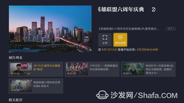 使用智能電視或者電視盒子的用戶(hù)可以通過(guò)沙發(fā)管家客戶(hù)端安置“騰訊視頻TV版”,鎖定游戲?qū)^(qū),不雅觀(guān)看英雄聯(lián)盟六周年精彩盛況。【沙發(fā)管家安置包>>
