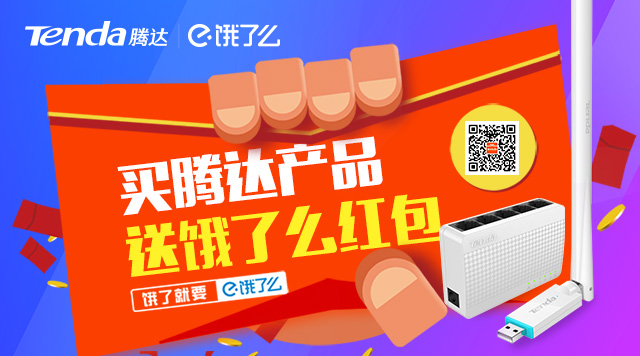 此次騰達聯合餓了么傾情回饋新老用戶活動已經登錄騰達京東自營店、騰達天貓旗艦店,紅包買就送,更多活動詳情請關注騰達微信公眾平臺。