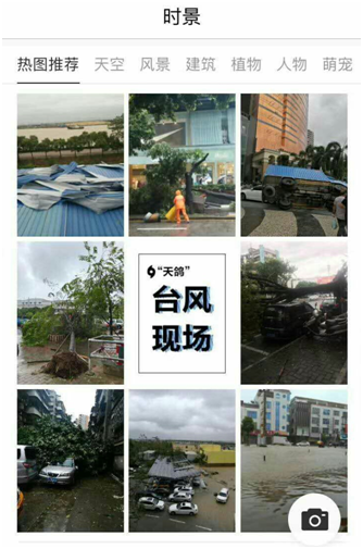 在廣東廣西過境的強臺風“天鴿”事件中,墨跡天氣的用戶自發(fā)在時景社區(qū)中上傳了第一手時景實時圖片,及時還原了臺風天氣中驚心動魄的現(xiàn)場。這些照片,比氣象臺的實況數(shù)據(jù)更直不雅觀,更及時。
