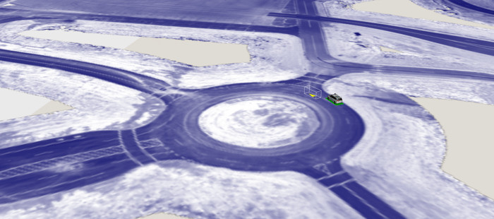 而我(文章作者 Alexis C. Madrigal)現在看到的則是整個學習過程的第三步:真實環境駕駛的數字化、圖像化呈現。在這一步,一個單一的駕駛行為(如在環島的超車行為)可以被發散成上千種模擬場景,用來探測自動駕駛汽車能力的界限在哪里。