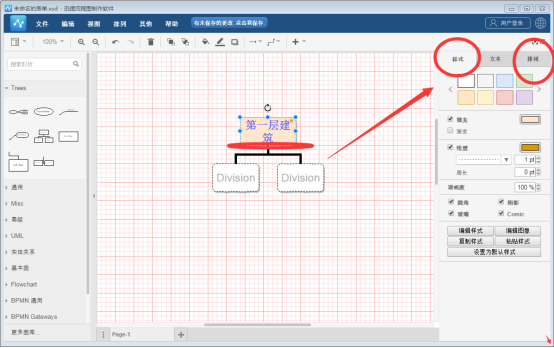 將思維導圖的素材添加到編纂區域后,可以在素材上添加文本內容。只需要選中圖形素材,即可在其中輸入文字內容。若是需要對文字格式進行編纂,選中文字內容后,在左側的“文本”版塊中,即可對文字的顏色、樣式等等進行設置。