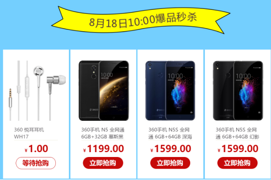 持續時間24小時(不包孕:N5S 32G版、128G版以及N5高配版流光金三款機型)其他機型在活動頁面()購買均可享受特惠100元秒殺福利。除上述三款機型外,360手機當前最受消費者關注的機型還包孕N5s 64版,售價1699元,N5 32GB版和64GB星空黑版等,官方售價別離1299元、1499元。有這一福利相助,用戶最多只需1599元、1199元、1399元就能將三款產品拿回家。