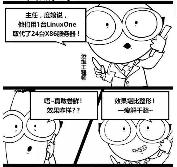 巨人網(wǎng)絡(luò)通訊聲明:本文標(biāo)題《理解LinuxONE漫畫版之一:一瘦解千愁》,本文關(guān)鍵詞 理解,LinuxONE,漫畫,版,之一,;如發(fā)現(xiàn)本文內(nèi)容存在版權(quán)問(wèn)題,煩請(qǐng)?zhí)峁┫嚓P(guān)信息告之我們,我們將及時(shí)溝通與處理。本站內(nèi)容系統(tǒng)采集于網(wǎng)絡(luò),涉及言論、版權(quán)與本站無(wú)關(guān)。