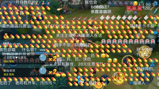劍仙直播時的BGM在王者峽谷里也是出了名的“奇葩”,聽說你們直播時都放一些林肯公園?流行音樂?搖滾?戰歌?欠好意思,我就放《小跳蛙》,快樂的一只小西瓜,啦啦啦啦啦。下午更是放了一首不知道哪找來的《神經病之歌》,還跟著一起唱哈哈哈哈哈哈,聽的直播間百萬粉絲都快神經病了,當時的彈幕,是這樣的情況: