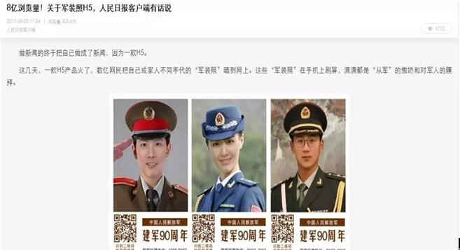 就如人民日報文章中說的那樣“預料到會火,但沒想到會這么火”,誰也沒有想到“軍裝照”能引起這么多用戶的共鳴,達到 8 億多的瀏覽量。