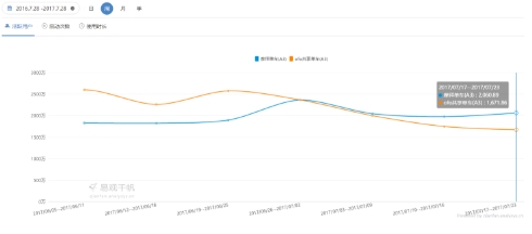 從活躍用戶量來看, 6 月 21 日~ 7 月 21 日,摩拜日活躍用戶量從 653 萬增長至 855 萬,增幅為31%,ofo小黃車從 1031 萬下滑至 513 萬,降幅為50%。 7 月 21 日,摩拜日活躍用戶量為 855 萬,,ofo小黃車為 513 萬,摩拜領先67%。 7 月 17 日至 23 日,摩拜周活躍用戶量為 2061 萬,ofo小黃車為 1672 萬,摩拜領先23%。