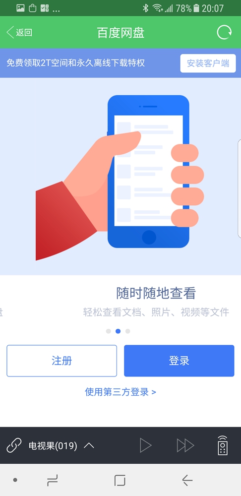 別的,電視果 3 也提供了電視直播的資源,用戶可以通過手機添加百度網盤的賬號,直接登錄后在屏幕上投屏分享網盤中的內容。而類似網易云音樂這樣的音樂軟件則可以通過DLNA模式連接,在APP中打開設置,在屏幕上播放音樂以及歌詞等