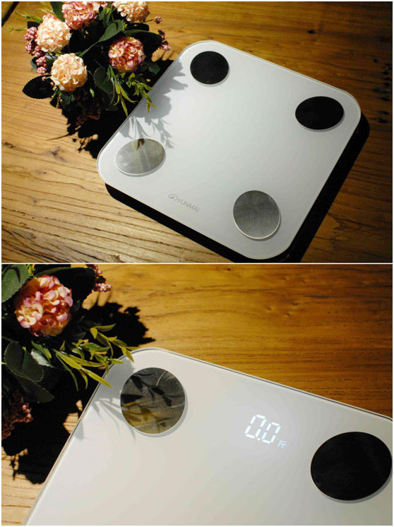 和那些ABS工程塑料材質的體重秤對最近說,云麥好輕mini2體脂秤大膽的使用了超白鋼化玻璃的面板,配以四角嵌入的對稱型不銹鋼測試觸片,在即使感的檔次上提升的不止一點點,產品一共提供黑白雙色給用戶選擇,不過筆者還是強烈保舉白色,在大搞建設的城市里居住落灰積塵是個很頭痛的問題,而白色款豈論放置多久也不消擔心吃灰影響美不雅觀的問題。