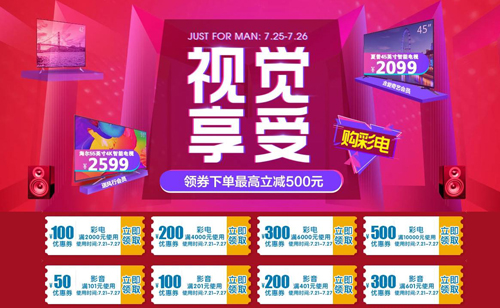 如果說三八是獨屬于女人的節日,那么八三就是男人的狂歡。翻看日歷,七月已過了大半,在七月末八月初這段時間里,一邊是各種賽事強勢出擊、暑期大劇頻頻開播,一邊則是距8.3“男人節”愈來愈近了。每年的“男人節”國美Plus都會體貼的為各位男士準備驚喜,本年仍不例外,甚至驚喜更大。為讓廣大消費者能在第一時間享受到這份福利,國美Plus提前于 7 月 25 日至 7 月 26 日驚喜開啟“視覺享受 購彩電”的彩電專場大促活動,更有“領券滿 2000 元減 100 元,最高立減 500 元”的優惠玩法。快來選擇一款適合你的電視抱回家!
