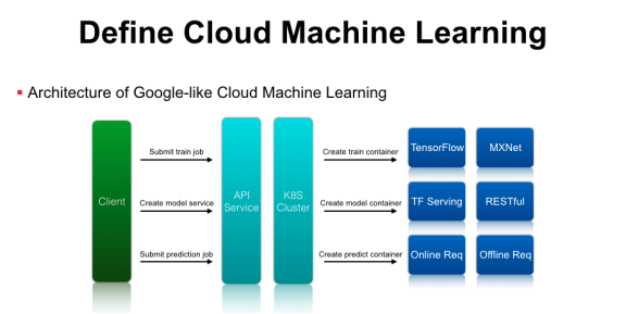 以上這些都是業(yè)界比較成熟的云深度學習平臺,而在真實的企業(yè)環(huán)境中,我們?yōu)槭裁催€需要實現(xiàn)Cloud Machine Learning辦事呢?首先國外的基礎(chǔ)設(shè)施并不必然是國內(nèi)企業(yè)可以直接使用的,而如果只是當?shù)匕仓昧薚ensorFlow,那也只能在裸機上進行訓練,當?shù)啬J沒有資源隔離,如果同時跑兩個訓練任務(wù)就需要本身去解決資源沖突的問題。因為沒有資源隔離,所以也做不了資源共享,即使你有多節(jié)點的計算集群資源,也需要人工的約定才能保證任務(wù)不會沖突,無法充分利用資源共享帶來的便當。此外,開源的機器學習框架沒有集群級另外編排功能,例如你想用分布式TensorFlow時,需要手動在多臺辦事器上啟動進程,沒有自動的Failover和Scalling。因此,很多企業(yè)已經(jīng)有機器學習的業(yè)務(wù),但因為缺少Cloud Machine Learning平臺,仍會有安排、辦理、集群調(diào)度等問題。