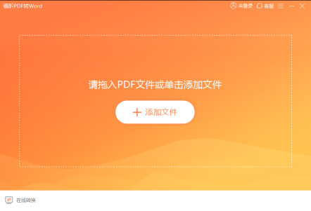 2、使用“拖入PDF文件或單擊添加文件”將PDF文檔添加到福昕PDF轉Word轉換器中;