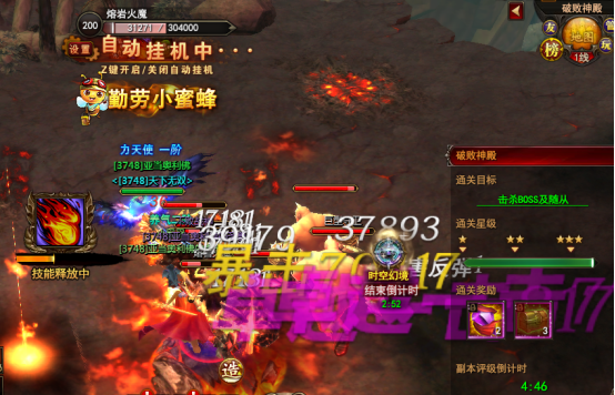 主線任務基本都是消滅BOSS及隨從,里面的小怪都是LV200的熔巖火魔,一大堆火魔蜂擁而至。什么時候才能看到BOSS呢?千萬別著急,消滅完第一波小怪,BOSS就會出現。打著打著,又看到別的一類LV200巨型保衛的小怪,混戰中總是無法看清它們的正臉。