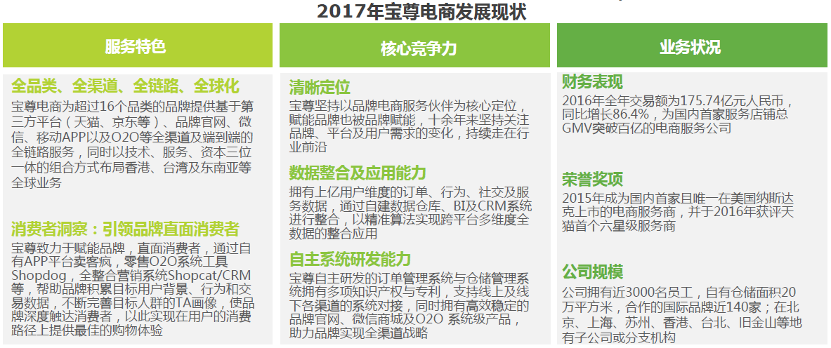 今日,國內(nèi)專業(yè)調(diào)研機(jī)構(gòu)艾瑞咨詢發(fā)布了《 2017 中國品牌電商辦事行業(yè)研究陳訴》,(以下簡稱“陳訴”)。寶尊為三星打造的官方商城,布局全渠道引發(fā)關(guān)注。