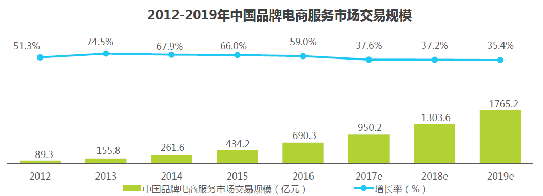 《 2017 中國品牌電商辦事行業(yè)研究陳訴》表白,電子商務(wù)行業(yè)的不停發(fā)展和成熟給予了辦事商良好的發(fā)展契機(jī)。得益于電商的快速發(fā)展,品牌電商辦事市場連結(jié)高速增長。2016 年,中國品牌電商辦事市場規(guī)模已達(dá)到 690. 3 億元人民幣,連結(jié)59.0 %的高速增長;艾瑞預(yù)計 2019 年市場交易規(guī)模將達(dá)到1765.2 億元人民幣。