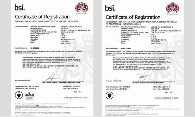 7 月 13 日,BSI(英國(guó)尺度協(xié)會(huì))授牌儀式在杭州正式舉辦,企業(yè)微信、企業(yè)郵箱通過(guò)最高等級(jí)公有云個(gè)人隱私掩護(hù)認(rèn)證——ISO/IEC27018 尺度認(rèn)證,成為國(guó)內(nèi)首家獲得此項(xiàng)證書(shū)的企業(yè)產(chǎn)品。