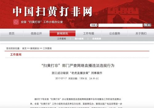 4 月 2 日,,接到案件線索后,浙江省紹興市公安局立即成立專案組開展案件偵辦工作。在省“掃黃打非”辦公室、省公安廳治安總隊的指導下,在騰訊、阿里等公司的技術支持下,專案組偵查摸清了“老虎直播”的組織結構、涉案人員和資金走向等情況。