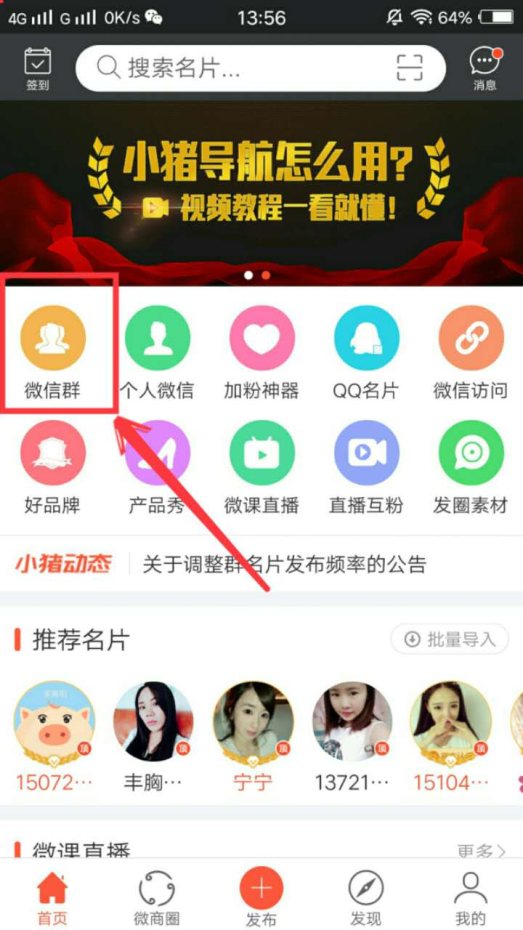 通過添加代言人或小豬導航等各種可以發布微信群的公眾號發布群名片,當然,群名片的發布過程是有技巧的。
