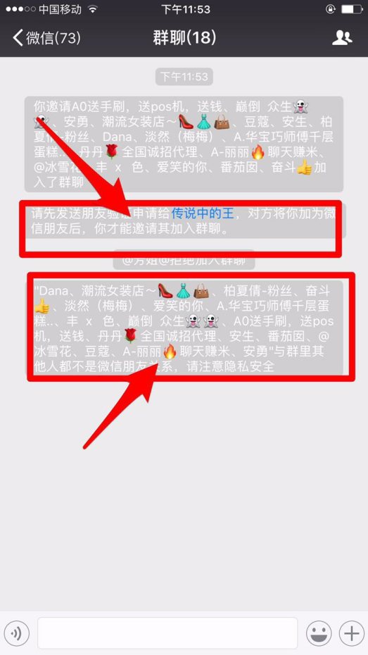 首先,勾選任意好友建立一個19人的微信群,設置群名稱為“進群+群主不加秒踢,再設置群公告“歡迎新人進群,進群第一時間加群主,不加秒踢,不得隨意更改群名片”,總之一個目的,讓進群的添加群主。