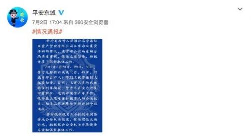 【TechWeb報(bào)道】7月3日消息,昨日,北京市公安局東城分局官方微博@安然東城發(fā)布消息稱, 北京華贏凱來(lái)資產(chǎn)辦理有限公司涉嫌不法集資被投資人舉報(bào),目前包孕白某某等32人已經(jīng)抓捕歸案。