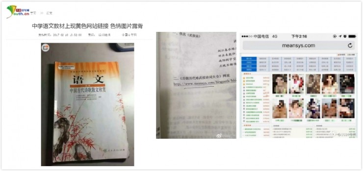 本年 2 月份的時(shí)候,曾有微博網(wǎng)友爆料,稱本身發(fā)現(xiàn)人教版高中語文選修教材《中國古代詩歌散文欣賞》中有一個(gè)歷朝詩歌欣賞的網(wǎng)站保舉,該網(wǎng)友想進(jìn)入學(xué)習(xí),誰知搜索該網(wǎng)址后,竟看到了不堪入目的淫穢色情畫面: