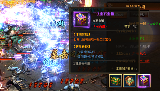 裝備寶箱,這可不是什么套裝寶箱,而是異寶的寶箱。開啟寶箱可隨機獲得一件1~ 3 階的異寶裝備,包羅:坐騎、飛羽、神兵、法寶、仙童等。第二個就不消介紹了,大家都很熟悉。第三個二級寶石寶箱,開啟后隨機的一顆二級寶石,這也是傲天西游之路中提升戰(zhàn)力的好東西。