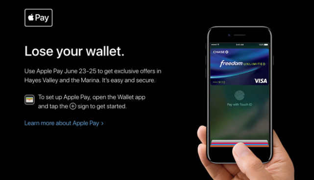 據(jù)美國(guó)科技新聞網(wǎng)站AppleInsider報(bào)道,下周末在加州大城市舊金山,蘋果將聯(lián)合多家商戶和餐館,進(jìn)行一次蘋果支付的推廣活動(dòng),兩個(gè)繁華商業(yè)區(qū)的商戶,將會(huì)向蘋果支付的用戶提供獨(dú)家的打折。