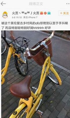 ofo與鳳凰合作生產的ofo公主車一推出,就受到了用戶的廣泛好評。有用戶在微博留言,“被這個英倫復古鄉村風的ofo驚艷到以至于手抖”。還有用戶發現街頭的ofo公主車,忍不住騎上去兜風,玩得太嗨根本停不下來。可見,ofo公主車深得女性用戶青睞,成為行業新殺手锏。