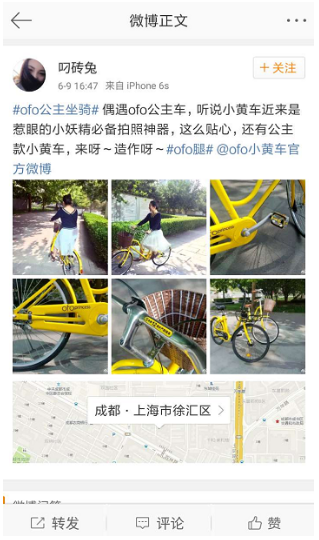 微博話題#ofo腿#的流行讓無數長腿小姐姐嗨了一把,,不知道這次小黃車的復古貼心設計又將擄獲多少女神的芳心,看著微博里小姐姐們騎著“公主車”的仙女照,小編也是好生羨慕,也想坐上公主車釀成“小仙女”呢。