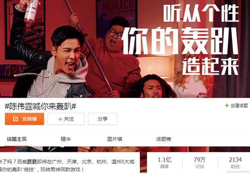 Play hard,才能不負(fù)大好時(shí)光!同為兩家品牌的代言人,國民男神陳偉霆還親自示范教你如何玩轉(zhuǎn)各種轟趴,消息一出,引起女皇粉絲的瘋狂轉(zhuǎn)發(fā),活動(dòng)一時(shí)火爆微博,,陳偉霆喊你來轟趴話題閱讀已逾一億,微鯨+百威的組合,被贊智能科技+派對(duì)王合體非常精彩。