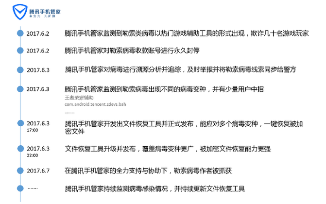 (圖:騰訊手機管家應對勒索病毒時間線)