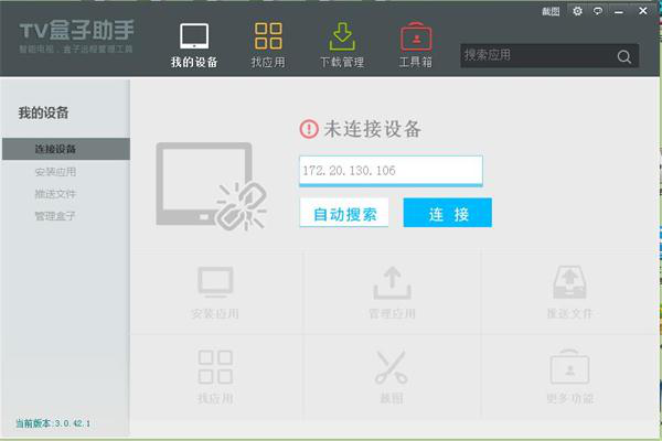三、打開TV盒子助手,輸入剛才查看的創維電視ip并連接