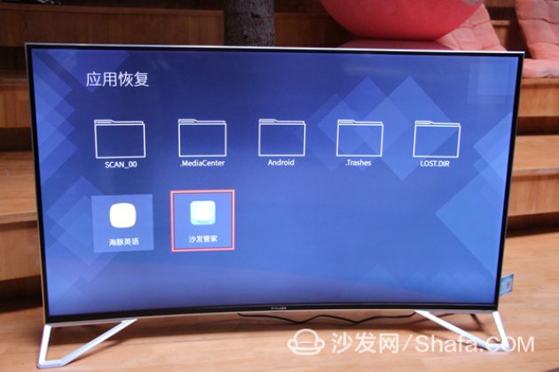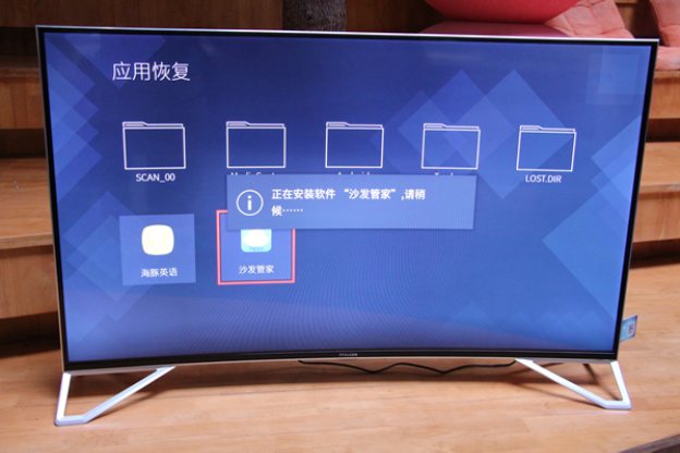 ①下載沙發(fā)管家安置文件到U盤/SD卡→②U盤連接TCL電視→③通過“應(yīng)用恢復(fù)”打開安置文件→④安置成功