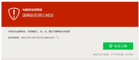 6 月 1 日,中國網絡領域首部基礎性的法律——《中華人民共和國網絡安適法》正式施行。這部堪稱“史上最嚴”的新法,針對時下網絡安適亂象,尤其是針對個人信息泄露與網絡詐騙的違法行為,制定了諸多禁止條款和嚴厲的處罰規定。即便如此,在國家的大力整治和法律的威懾之下,,仍有非法分子頂風作案,據騰訊電腦管家監控發現,近期,冒充公檢法實施電信詐騙數量猛增,僅 5 月 1 日到 5 月 10 日假冒公檢法網址共計 278 個,共有 1091 位受害者拜候了假冒的公檢法網站。