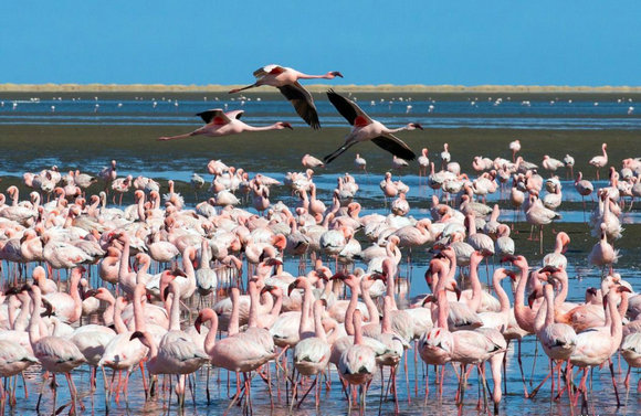 在南非最大火烈鳥棲息地瀉湖旁欣賞火烈鳥優(yōu)雅的身姿。