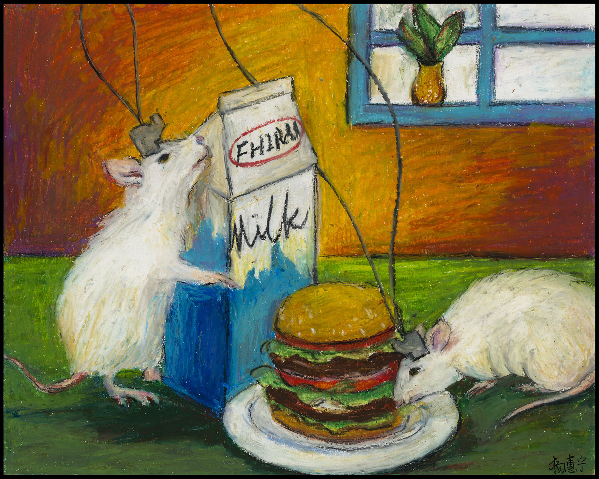 楊蕙寧按照新一代微型化雙光子熒光成像技術(shù)作畫