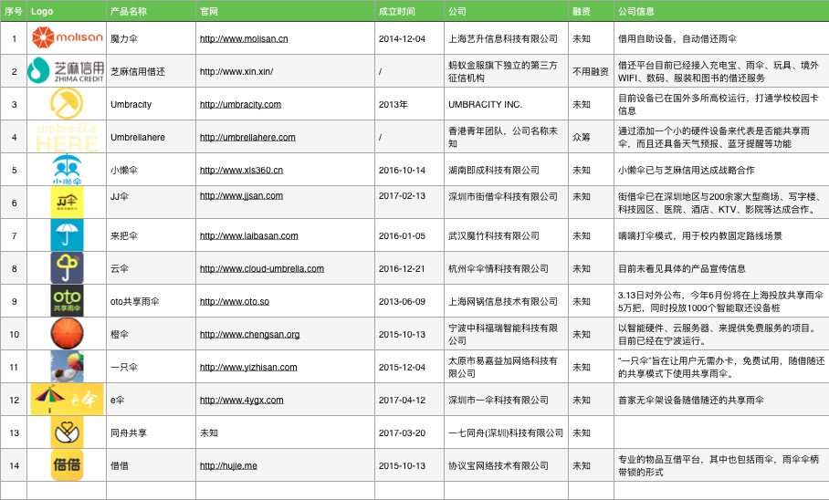 共享雨傘現狀:玩家十余個,僅三家獲融資
