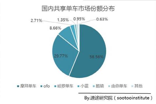 不但如此,摩拜共享單車在市場份額方面更是一騎絕塵,遙遙領跑于其他競爭對手。近日,國內權威第三方數據調研機構速途研究院發布了《 2017 年第一季度國內共享單車市場調研陳訴》,該陳訴顯示,以訂單量計算,摩拜單車已占據共享單車市場57%的份額,超過第二名ofo近 30 個百分點,領先優勢十分明顯。
