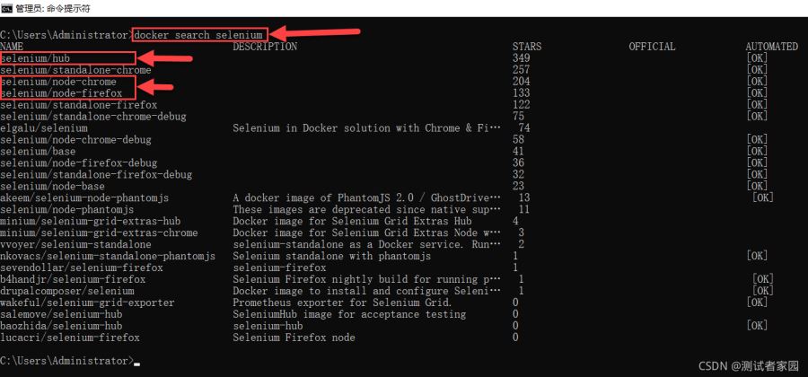 在Docker Hub中提供了Selenium Grid的相關鏡像文件可供使用,如圖2所示。