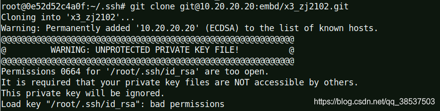 則表示私鑰 id_rsa 權(quán)限問題,通過在 Dockerfile 中加入