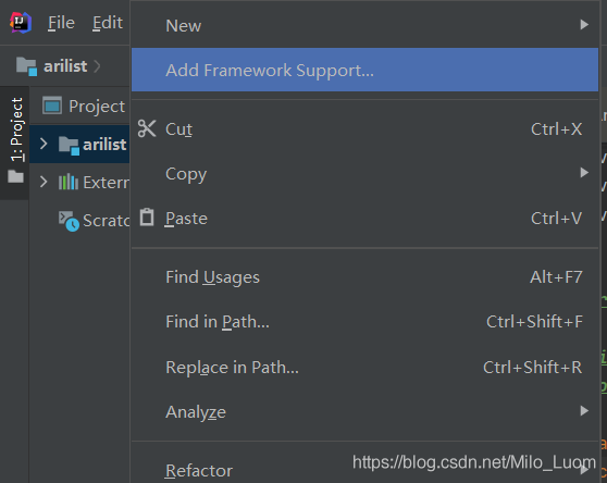 2、右鍵工程,選擇 Add Framework Support…