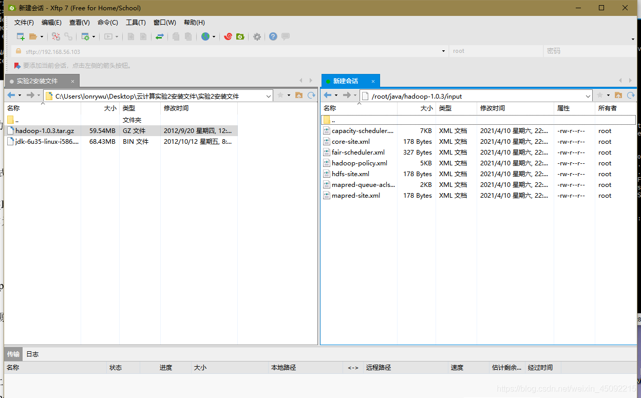 主要作用是用Xshell 7進行虛擬機各項操作,用Xftp 7將本地的jdk及hadoop安裝包傳輸到虛擬機上